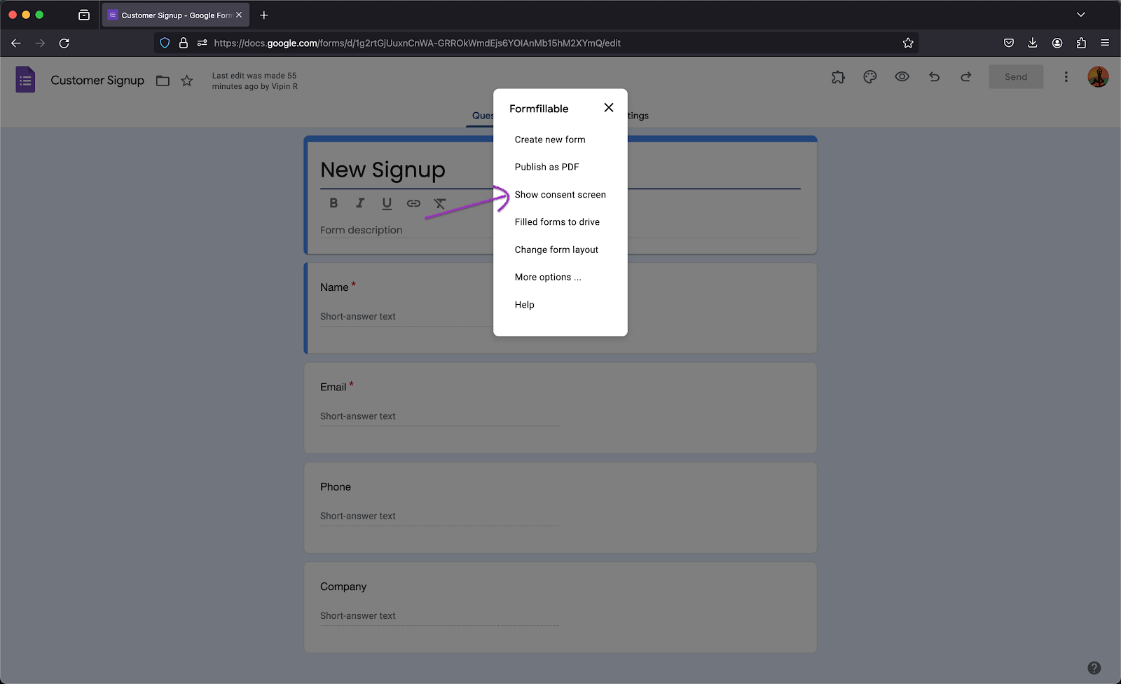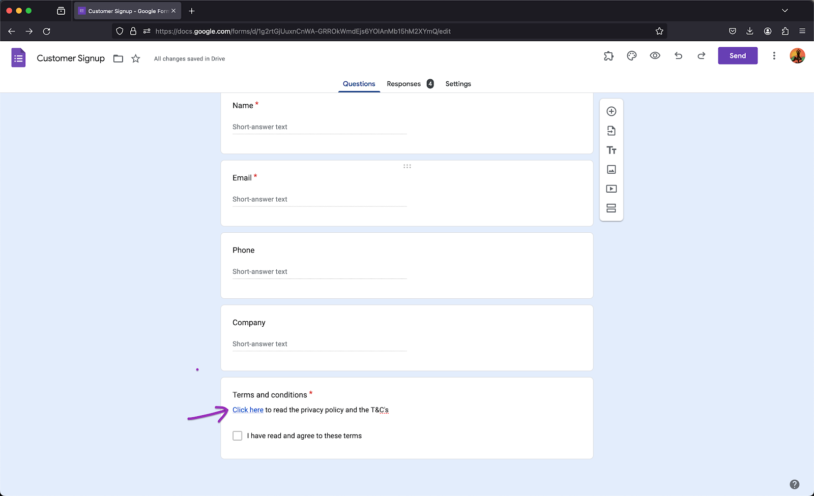 The google doc will be automatically converted into a consent screen and displayed before submit.