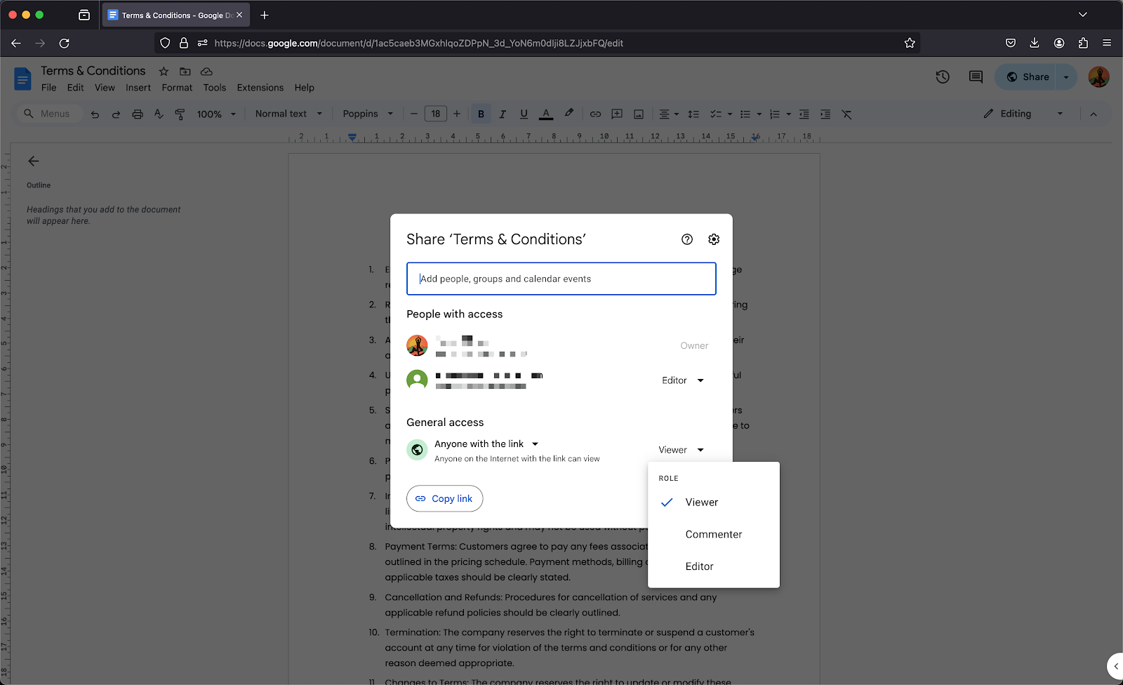 If you don't have the terms and conditions published online, either on your website or other platforms, then you can create google doc with T&C's and publish it.